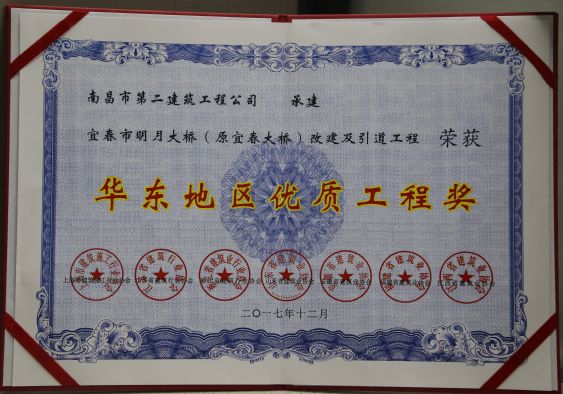 新年伊始,公司項目就迎來了開門紅。公司承建的宜春市明月大橋改建及引道工程榮獲華東地區優質工程獎。